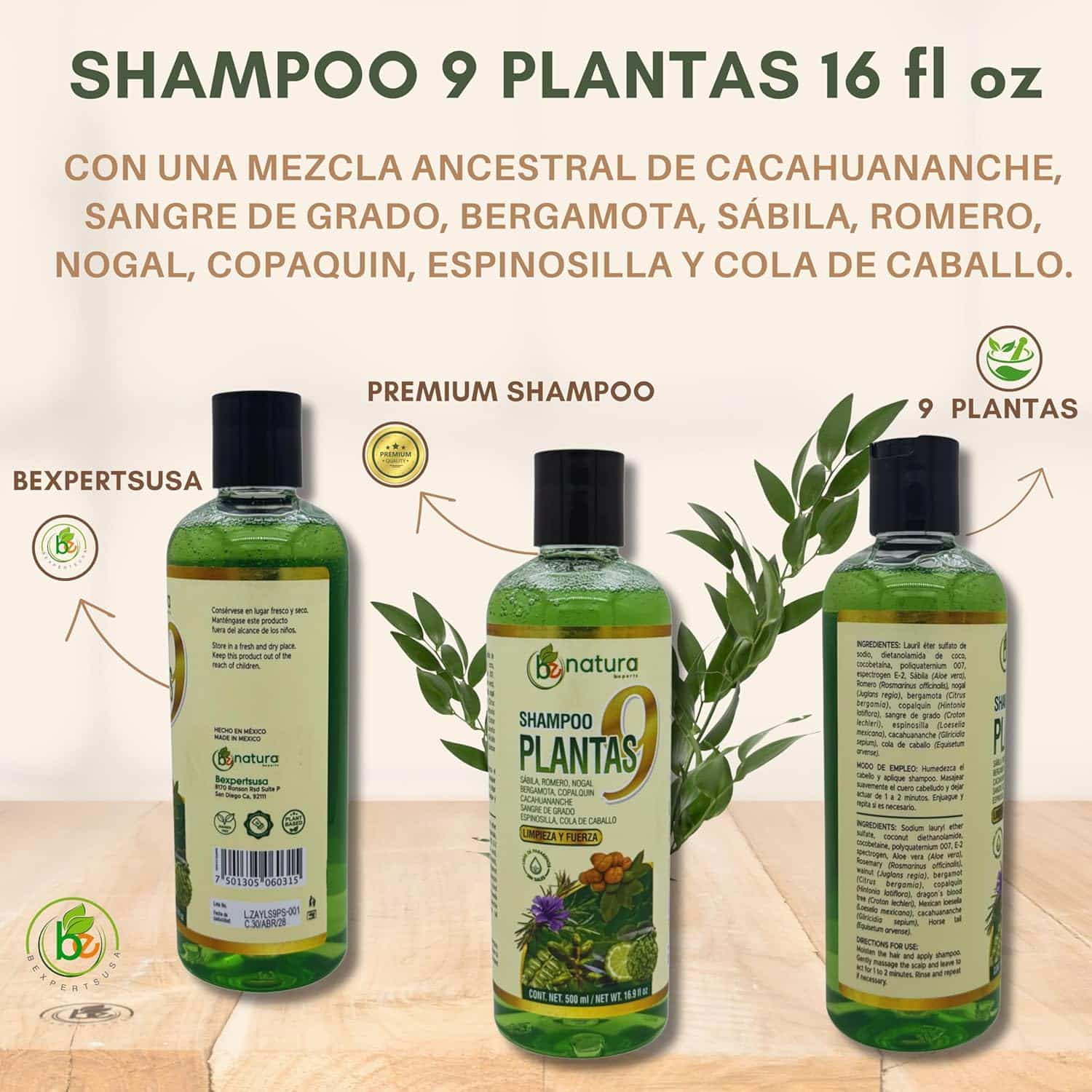 Discover the power of tradition with our 9-Plant Herbal Shampoo. This nourishing formula combines 9 botanical extracts known across generations for their use in natural hair care: Cacahuananche, Sangre de Grado, Bergamot, Aloe Vera, Rosemary, Walnut, Copaquin, Espinosilla, and Horsetail (Cola de Caballo). Crafted without parabens or sodium-based surfactants, this shampoo gently cleanses the scalp while supporting strong, clean, and healthy-looking hair. Its rich lather and refreshing herbal aroma make it perfect for daily use and all hair types. For external use only. This product is not intended to diagnose, treat, cure, or prevent any disease. Descubre el poder de la tradición con nuestro Shampoo de 9 Plantas. Una fórmula nutritiva que reúne 9 extractos botánicos reconocidos por generaciones en el cuidado natural del cabello: Cacahuananche, Sangre de Grado, Bergamota, Sábila, Romero, Nogal, Copaquin, Espinosilla y Cola de Caballo. Libre de parabenos y sodio, este shampoo limpia suavemente el cuero cabelludo y favorece un cabello más fuerte, limpio y saludable. Su espuma rica y aroma herbal lo hacen ideal para el uso diario y todo tipo de cabello. Solo para uso externo. Este producto no está destinado a diagnosticar, tratar, curar ni prevenir ninguna enfermedad. 🌿 9-Plant Herbal Shampoo – 16.9 fl oz 🌱 With Cacahuananche, Sangre de Grado, Bergamot, Aloe Vera, Rosemary & More Natural Botanical Formula | Paraben-Free | Sodium-Free | For Strong, Clean & Healthy-Looking Hair Revitalize your hair with the natural strength of 9-Plant Herbal Shampoo, a botanical-rich formula designed to cleanse, strengthen, and nourish your hair and scalp without harsh chemicals. Infused with Cacahuananche, Sangre de Grado, Bergamot, Aloe Vera, Rosemary, and other traditional herbal extracts, this shampoo offers a gentle, plant-powered cleanse that helps support strong, soft, and naturally radiant hair. 🧴 16.9 fl oz – Long-lasting, perfect for daily use 🌿 9 Powerful Herbal Ingredients – Each selected for their traditional hair-supporting benefits 💧 Paraben-Free & Sodium-Free – No harsh ingredients, just clean beauty 🍃 Fresh, Herbal Scent – Light and natural, with a refreshing feel 🌼 Ideal for All Hair Types – Especially suited for hair in need of balance and vitality ✨ Why You’ll Love It – Nature Meets Nourishment ✨ 💪 Supports Stronger-Looking Hair Infused with time-honored botanicals like Cacahuananche and Sangre de Grado, known for their use in natural hair care. 🧖‍♀️ Deep Yet Gentle Cleanse Cleans without stripping—perfect for sensitive scalps or daily use. 🍃 Botanical Hydration Aloe and rosemary help soothe and refresh, while bergamot adds shine and aroma. 🧼 No Nasties, Just Nature Free from parabens, sodium, and synthetic additives. 🌿 Inspired by Traditional Herbal Wisdom A unique blend that bridges ancestral care and modern hair wellness. 💡 How to Use Wet hair thoroughly and apply shampoo. Massage gently into scalp and hair for a rich, botanical lather. Rinse completely and repeat if needed. Follow with a natural conditioner or herbal hair tonic for enhanced results. 💖 Nurture your hair with nature’s best—9-Plant Herbal Shampoo is your go-to for a clean, strong, and vibrant look, powered by plants. 🌿🧴✨