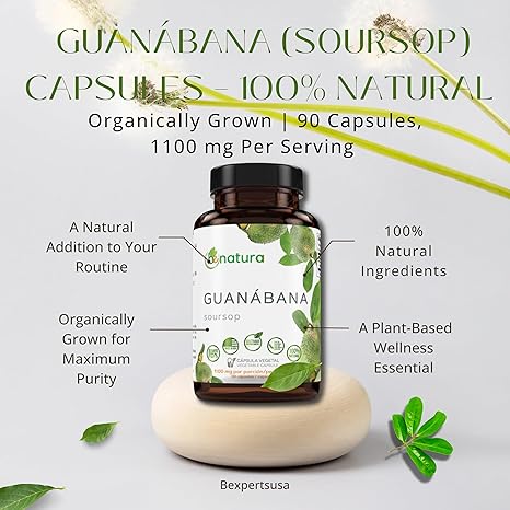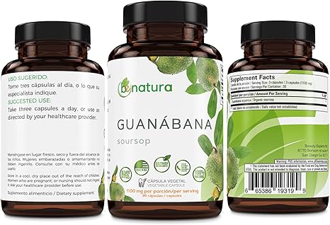 Guanábana (Soursop) Capsules – 100% Natural, Organically Grown | 90 Capsules, 1100 mg Per Serving 💊 🌿 A Premium Herbal Supplement for Your Natural Wellness Routine 🌿 Experience the power of Guanábana (Soursop) Capsules, made from organically grown, 100% natural ingredients to support your wellness journey. Each serving delivers a potent 1100 mg blend of high-quality guanábana, carefully sourced for purity and potency. Encapsulated in vegetable-based capsules, this supplement is ideal for those seeking a plant-powered, chemical-free option for daily use. 🌱 100% Natural & Organically Grown – No artificial additives, fillers, or preservatives. 💊 1100 mg Per Serving – A concentrated dose of premium guanábana extract. 🍃 Vegetable Capsules – A vegan-friendly supplement for a plant-based lifestyle. 🌿 Pure & Potent – Carefully processed to retain the full essence of guanábana leaves. 🇲🇽 Cultivated Organically – Sustainably sourced and harvested with care. 💡 How to Use Guanábana (Soursop) Capsules 💡 ✔ Take 3 capsules daily with water, preferably with a meal. ✔ Ideal for daily use as part of a balanced wellness routine. ✔ Store in a cool, dry place for maximum freshness. 💚 Harness the power of guanábana in an easy-to-take capsule—pure, natural, and crafted for those who seek botanical wellness!