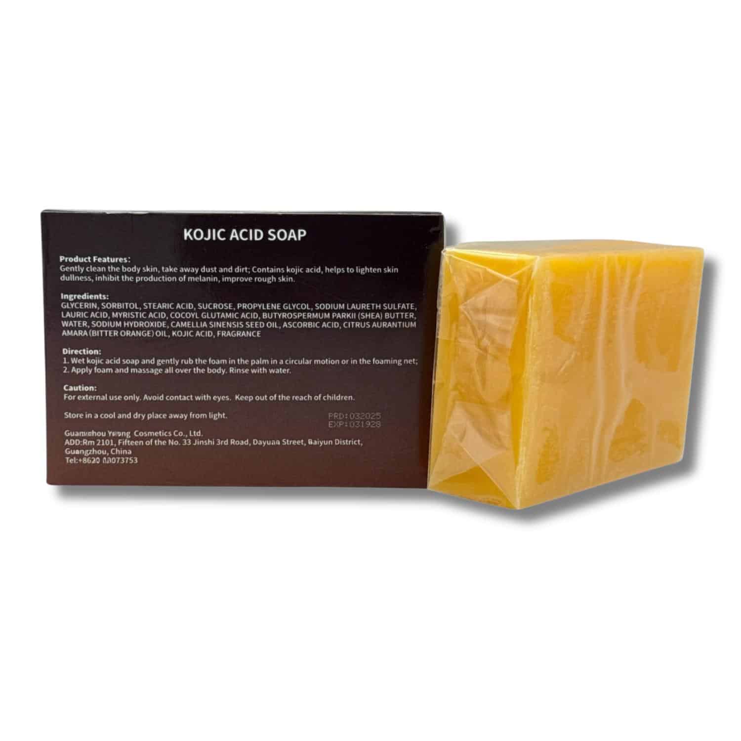 This 2-pack of Kojic Acid Brightening Soap, each 100g, is perfect for face and body. It gently exfoliates, evens out skin tone, and controls oil. Ideal for sensitive and acne-prone skin, it reduces pigmentation and brightens. Contains kojic acid, shea butter, camellia oil, and vitamin C. Suitable for all skin types.