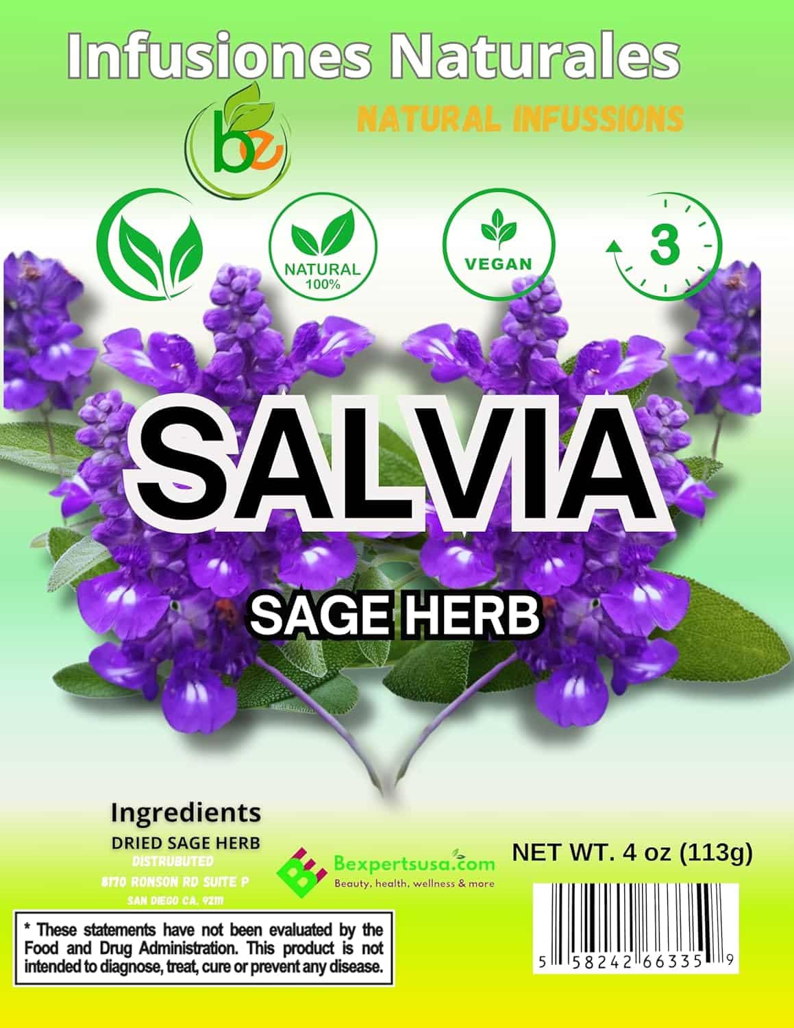 Salvia Tea (Sage Leaf Herbal Te) – 4 oz (113g) Loose Leaf – 100% Natural, Food-Grade, Caffeine-Free – Non-GMO, Vegan – Digestive & Relaxing Herbal Infusion – Not for Smudging or Burning